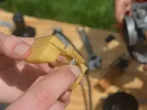 Используйте плоскогубцы, чтобы прикрепить поплавок обратно к карбюратору, вдавив штифт поплавка.