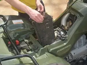 В этот момент корпус воздушного фильтра должен быть ослаблен. Поднимите корпус вертикально и выньте его из квадроцикла.