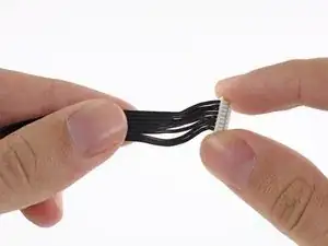 Это очень плотная посадка, действуйте медленно и избегайте повреждения Molex-разъёма или кабеля. Мы обнаружили, что лёгкое раскачивание Molex-разъёма туда и обратно через отверстие в конце позволяет его протянуть.