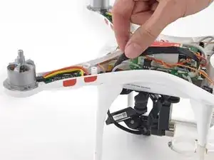 Не пытайтесь полностью снять корпус. Кабели GPS и магнитометра соединяют верхнюю часть корпуса с остальной частью Phantom — будьте осторожны, чтобы не повредить и не перегрузить эти кабели.