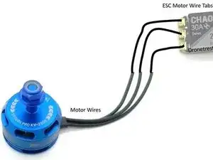 Если вы спаиваете новые провода мотора с уже существующими проводами ESC, наденьте новую термоусадочную трубку на каждый из трёх проводов перед пайкой. Если вы па́яете провода мотора непосредственно к контактам ESC, использование термоусадки не требуется.
