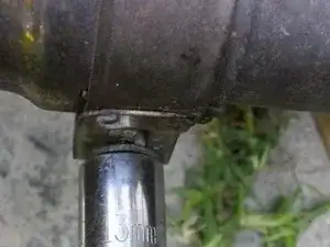 Используйте головку на 13 мм, чтобы ослабить зажим между глушителем и трубой коллектора.