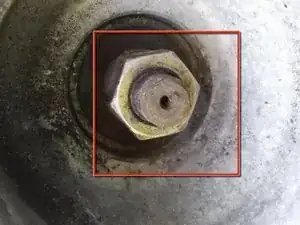 Снимите гайку 15 мм, фиксирующую нижний передний угол качалки.