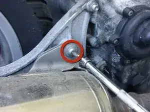Доступ к этой гайке ограничен трубой коллектора. Возможно потребуется карданный удлинитель, чтобы до неё добраться.