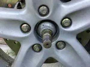 Снимите пять болтов 10 мм, крепящих заднее колесо.