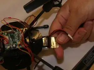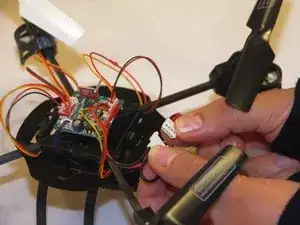 Отсоедините аккумулятор от дрона, разделив красный и черный провода аккумулятора от красного и черного провода дрона.