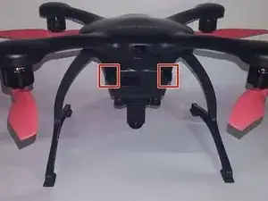 Когда дрон находится лицом вперед, сожмите два язычка на капсуле и потяните её вперед.