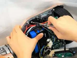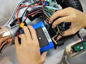 Отключите кабели, подключенные к аккумулятору, и извлеките аккумулятор из односкейтборда.