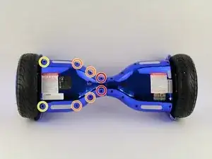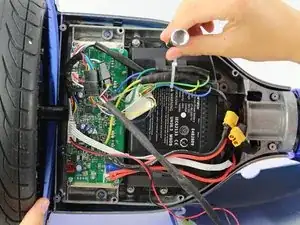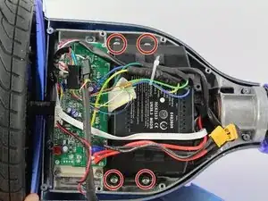 Используя отвертку Phillips #1, удалите два винта размером 14 мм, расположенные ближе к центру гироскутера.