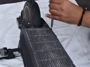 Переверните самокат вверх дном и открутите 18 винтов, крепящих крышку основания, с помощью отвертки с головкой Security Torx T15.
