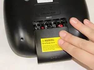 Сдвиньте крышку батарей пульта вниз, чтобы открыть доступ к батареям типа AA.