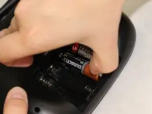 Удалите батареи типа AA, используя положительную сторону для извлечения батарей из пульта.