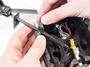 Аккуратно освободите четыре луча центрального каркаса дрона, пока он не отделится от корпуса, раздвигая пенопласт вокруг лучей.