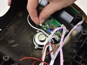 Отключите белый разъем, соединяющий сам динамик с платой, прикрепленной к нижней части корпуса устройства.
