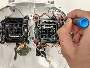 В этом руководстве пошагово показано, как безопасно снять и заменить джойстики пульта дистанционного управления DJI Phantom 4 Advanced. Поскольку для этой операции потребуется отключить плату, настоятельно рекомендуется начинать работу имея под рукой соответствующие инструменты и достаточно времени.