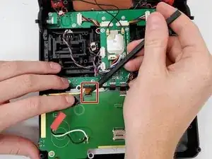 Осторожно отсоедините два провода, подключённых под платой экрана, с помощью пластиковой лопатки.