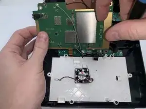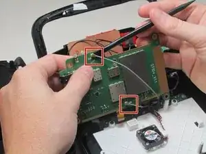 С помощью крестовой отвёртки Phillips #0 снимите четыре винта 6 мм, удерживающие пластину вентилятора экрана.