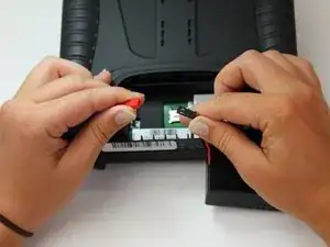 Чтобы отключить батарею от пульта, схватите красный и чёрный разъёмы.