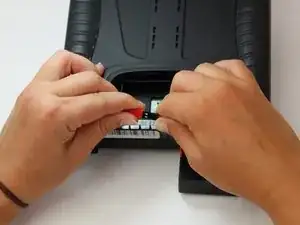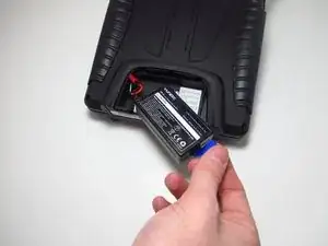 Аккуратно приподнимите синюю язычок, соединённый с батареей, чтобы вынуть аккумулятор из посадочного места.
