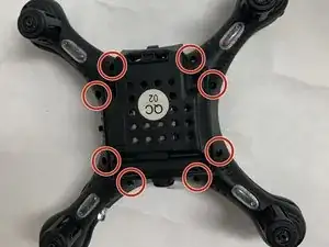С помощью крестовой отвертки #0 выкрутите восемь винтов, фиксирующих корпус дрона.