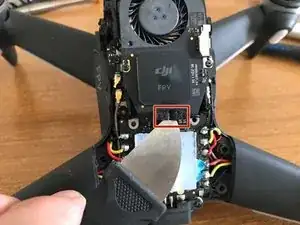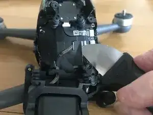 Кабель камеры также приклеен к корпусу дрона, поэтому аккуратно отделите провод от клея на корпусе дрона.