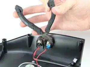 Проденьте провод и разъём через снятую гайку и вытащите кнопку питания через отверстие во внешнем корпусе.