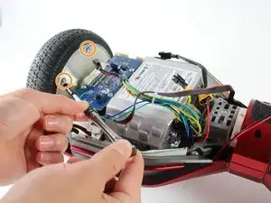 Замените одно из колес вашего Swagtron, следуя этому руководству. Чтобы избежать электрического удара, разрядите конденсаторы с помощью инструмента разряда конденсаторов перед внесением каких-либо изменений в ваш Swagtron.