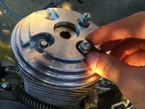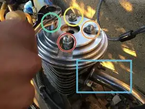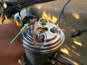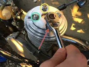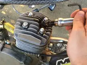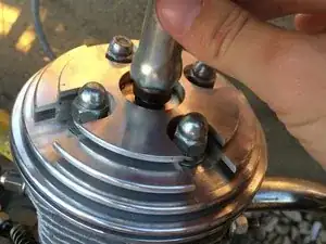 Наденьте ключ 3/8" на любую из четырёх гайкокрышек на верхней крышке компрессионной головки, установленной на байке.