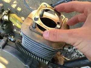 Снимите прокладку головки цилиндра с двигателя. Иногда прокладка прилипает к компрессионной головке — снимите прокладку, если она осталась на головке.