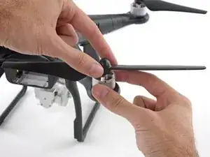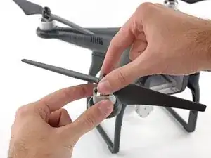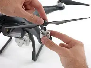 Ослабьте пропеллер, вращающийся по часовой стрелке, удерживая мотор одной рукой и вращая пропеллер по часовой стрелке.