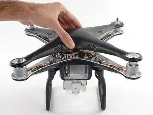 Поднимите верхнюю крышку корпуса и снимите её с корпуса дрона Phantom.