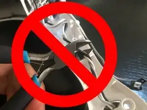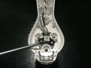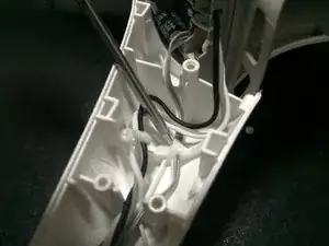 Мелкой отверткой аккуратно подденьте кабели мотора и светодиодов в местах, где они приклеены к корпусу.