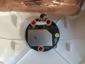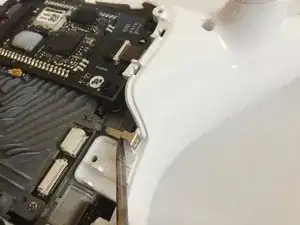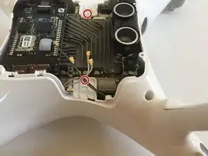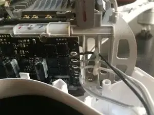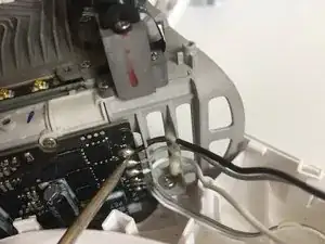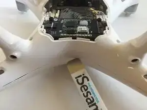 Используя крестовую отвертку Phillips #000, выньте три винта, крепящие плату к верхней половине корпуса дрона.