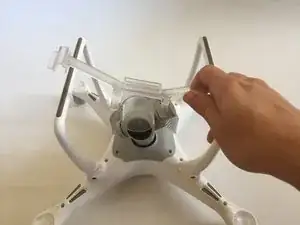 Если фиксация подвеса всё ещё установлена, снимите её с дрона.