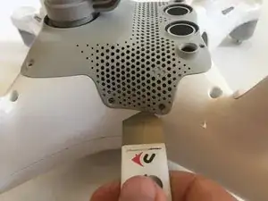 Пластиковой лопаткой или медиатором осторожно подденьте узел подвеса, чтобы приподнять его от дрона.
