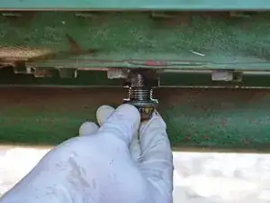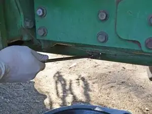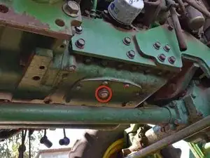 Сливная пробка — это шестигранный болт на 17 мм, расположенный на нижней стороне трактора.