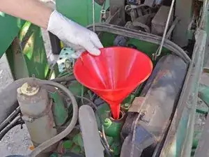 Вставьте воронку в отверстие заливной горловины.