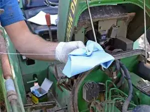 Протрите резьбу масляного фильтра и контактную поверхность на двигателе чистой тряпкой или полотенцем.