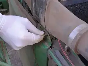 Вытащите защёлку открытия капота спереди справа на тракторе и поднимите капот.