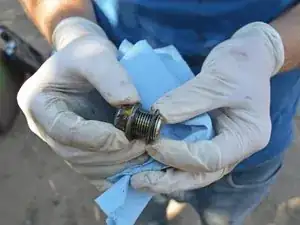 Пока масло сливается, протрите сливную пробку чистой тряпкой или полотенцем.