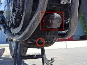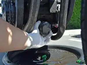 Найдите масляный фильтр и сливную пробку для масла с шестигранником 17 мм. Масляный фильтр расположен спереди, по центральной линии двигателя. Сливная пробка находится внизу двигателя, под масляным фильтром.