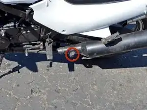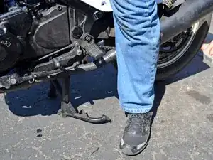 Начните с поиска средней опорной лапки (центральной подставки). Она расположена за левой подножкой и чуть ниже выхлопной трубы.