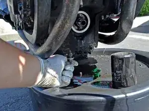 Закончите снятие сливной пробки вручную и дайте маслу стечь. Ослабление заливающей крышки масла до или после удаления сливной пробки поможет маслу стекать быстрее.