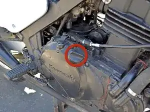 Найдите заливную крышку масла. Она находится на правой стороне мотоцикла, сверху на крышке сцепления.