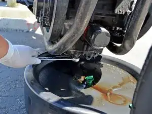 Используйте накидной ключ или головку 17 мм, чтобы повернуть сливную пробку против часовой стрелки до тех пор, пока не сможете выкрутить ее вручную.