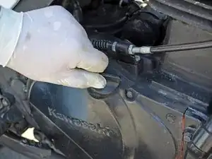 Снимите заливную крышку, повернув ее против часовой стрелки, пока не сможете вынуть ее из крышки сцепления.