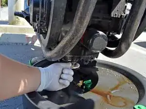 Убедитесь, что поддон расположен так, чтобы поймать масло, когда оно будет вытекать из картера.