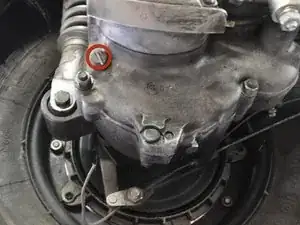 Осторожно поднимите крышку двигателя вверх и отведите её от скутера, учитывая монтажный кронштейн в задней части двигателя.