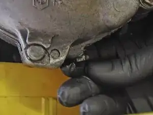 Подложите под двигатель ёмкость для слива масла, чтобы собрать отработанное масло.