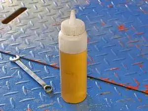 Для заливки масла в Vespa большого типа требуется узкий носик, позволяющий заливать масло горизонтально. Подходит бутылочка для соуса.